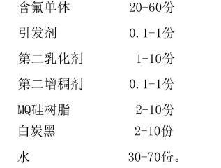 進(jìn)一步的,所述含氟單體為甲基丙烯酸六氟異丙酯、全氟己基乙基甲基丙烯酸酯、全氟己基乙基丙烯酸酯、全氟丁基乙基甲基丙烯酸酯、全氟丁基乙基丙烯酸酯、甲基丙烯酸-2,2,2-三氟乙酯、甲基丙烯酸十二氟庚酯或甲基丙烯酸六氟丁酯中的至少一種。