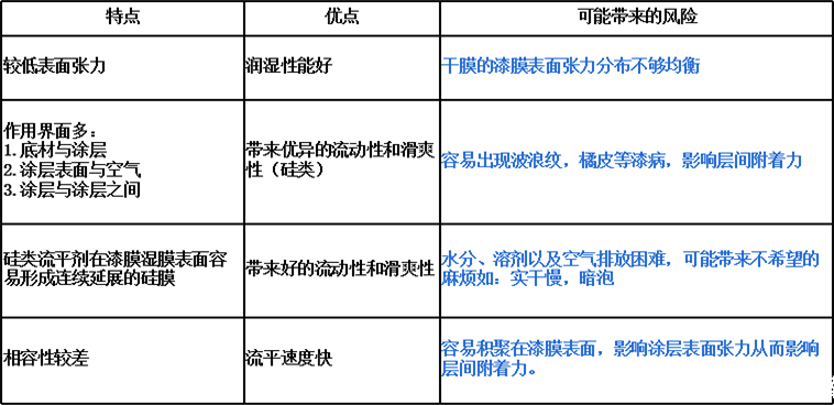 流平劑在施工完成后,都會向漆膜表面遷移,然后對漆膜表面產(chǎn)生影響。