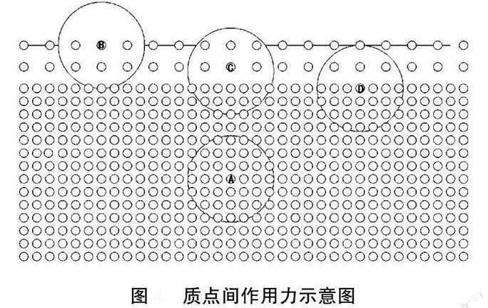 如果以質(zhì)點中心為圓心,10r0為半徑作一球面,顯然只有在這個球面內(nèi)的質(zhì)點才對位于球心上的質(zhì)點有作用力。熔體的表面層厚度等于質(zhì)點作用球半徑的一層,在表面層內(nèi)熔體質(zhì)點受力的情況跟熔體內(nèi)部的質(zhì)點的受力情況有所不同。由圖2可見,位于熔體內(nèi)部的質(zhì)點A受到周圍對稱分布的質(zhì)點的作用,其合力為0。熔體表面層質(zhì)點上下分布對稱性被打破,處于表層內(nèi)的熔體質(zhì)點B、C和D都受到了一個指向熔體內(nèi)部的力的作用從而向熔體內(nèi)部移動,使得質(zhì)點間距離減小,引力轉(zhuǎn)化為斥力,最終到達平衡狀態(tài)。在平行熔體表面的方向,熔體表面層內(nèi)的質(zhì)點分布是均勻的,只是間距比較大,質(zhì)點間作用力表現(xiàn)為引力,這便是熔體的表面張力。由于表面張力的作用,質(zhì)點之間的距離減小,使得熔體表面積減小,而一定體積的熔體中球體的表面積最小,所以熔體表面有形成球面的趨勢,但這種趨勢會受重力的影響而改變。重力是所有組成熔體的質(zhì)點所受的力的合力,而表面張力只是表面一層質(zhì)點間的引力,表面張力相對于重力而言微乎其微,所以對于大體積的熔體,重力作用遠大于表面張力作用,液面呈現(xiàn)平面。對于小體積熔體來說,組成熔體總的質(zhì)點數(shù)較少,表面張力已接近重力,甚至超過重力,使得液面呈現(xiàn)弧形甚至球形。上述的釉滴實驗可以證實這點。