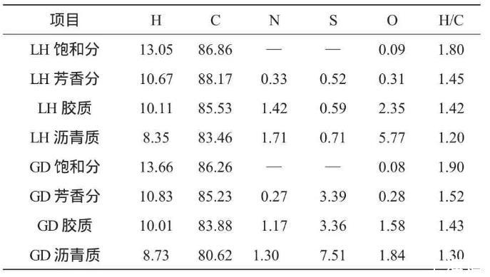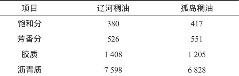 遼河和孤島兩種稠油組分的平均相對分子質(zhì)量和元素分析結(jié)果見表3、4。