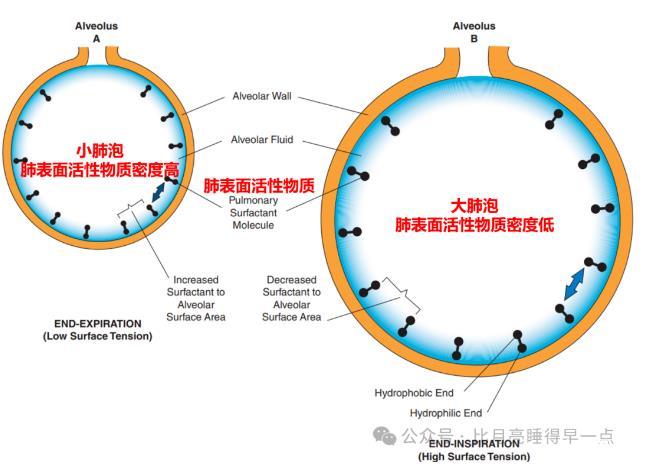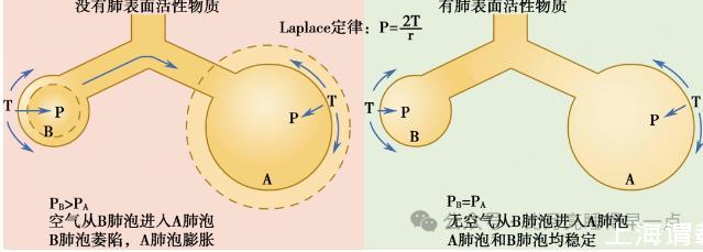 由上述公式可知,在T相同的情況下,肺泡半徑r越大,則肺泡液氣界面的壓強(qiáng)越??;肺泡半徑r越小,則肺泡內(nèi)液-氣界面的壓強(qiáng)越大。