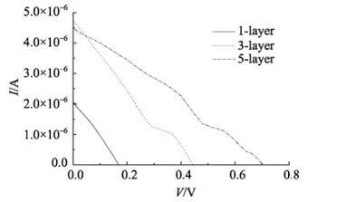 圖6不同層數(shù)石莼類囊體膜LB膜組裝成光電池的I-V曲線