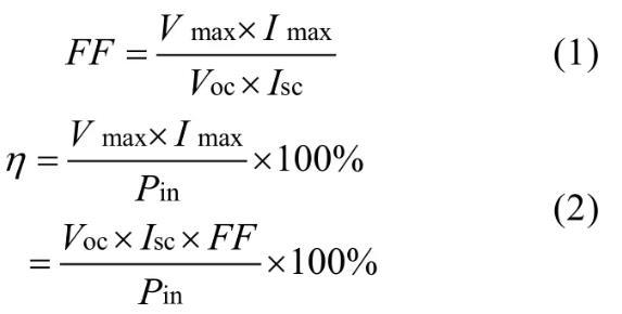 其中Vmax和Imax為最大輸出功率時對應(yīng)的電壓和電流,Pin為入射光強。