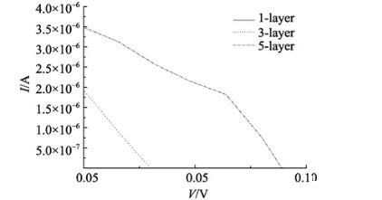 圖5不同層數(shù)菠菜類囊體膜LB膜組裝成光電池的I-V曲線