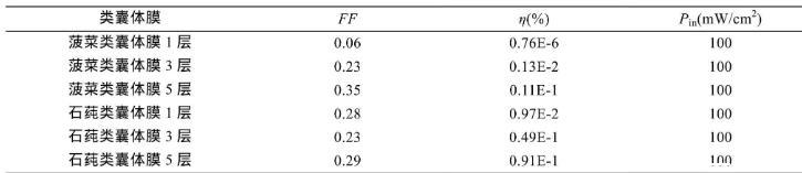 表1不同層數(shù)類囊體膜LB膜組裝成光電池的光電性能參數(shù)