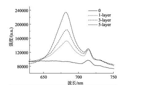 圖4不同層石莼類囊體膜LB膜在納米ZnO上的室溫?zé)晒獍l(fā)射光譜,436 nm激發(fā)