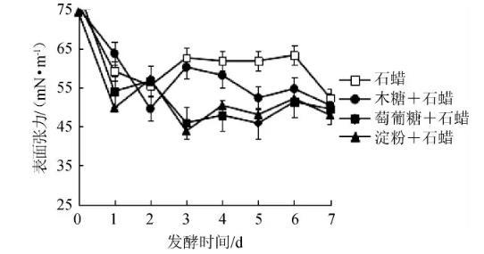 不同碳源對發(fā)酵液表面張力的影響