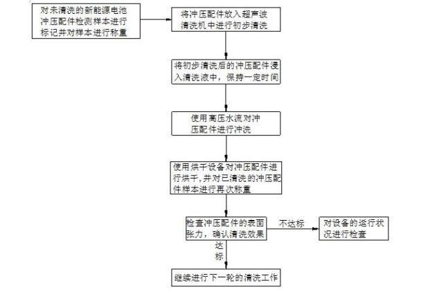 此沖壓配件的表面張力改善方法,就是通過將同一生產(chǎn)批次的沖壓配件放入超聲波清洗機(jī)中,超聲波清洗機(jī)產(chǎn)生的超聲波的高頻振動能夠產(chǎn)生微小的氣泡,這些氣泡在液體中爆裂時會產(chǎn)生沖擊力,對沖壓配件進(jìn)行初步清洗。然后,將經(jīng)過初步清洗的沖壓配件放入事先配置好的碳?xì)淝逑匆褐?,進(jìn)一步去除沖壓配件表面的氧化物和殘留物。再將經(jīng)過清洗液清潔處理過的沖壓配件取出,并使用高壓水流對清潔后的沖壓配件進(jìn)行沖洗,去除表面上的頑固污漬和顆粒,確保沖壓配件上的清洗液和殘留物被徹底清除。通過多重的清洗流程,有效提升新能源電池沖壓配件表面的清潔度,能夠達(dá)到理想的清洗效果,有效改善新能源電池沖壓配件的表面張力。