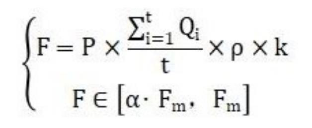 其中,F(xiàn)為高壓水流沖洗設(shè)備實際水流沖洗的沖擊力,Qi為高壓水流沖洗設(shè)備第i秒水流的流量,t為高壓水流沖洗設(shè)備預(yù)設(shè)的水流沖洗的時長,ρ為水的密度,k為預(yù)設(shè)定的閾值參數(shù),P為輸出功率可調(diào)的高壓水流沖洗設(shè)備的實際輸出功率,α為預(yù)設(shè)的抗壓閾值參數(shù)且其數(shù)值小于1,F(xiàn)m為新能源電池沖壓配件最大抗沖擊力值。