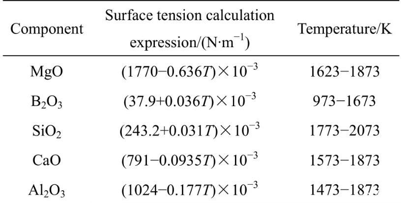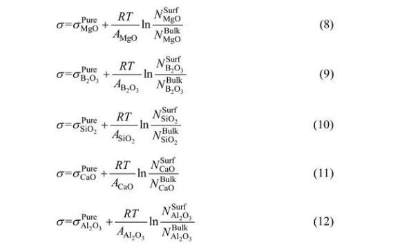 熱力學(xué)模型計(jì)算MgO-B2O3-SiO2-CaOAl2O3富硼渣表面張力(一)