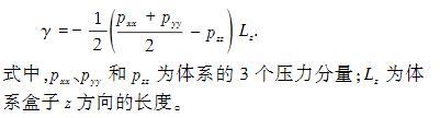每個(gè)模型都經(jīng)過100 ns的MD模擬,保證油水界面充分達(dá)到平衡狀態(tài),油水界面張力的計(jì)算采用50 ns的數(shù)據(jù),通過3次獨(dú)立模擬獲得界面張力數(shù)值。本文中對(duì)界面張力(IFT)的計(jì)算方法選用Gibbs界面張力計(jì)算法,模型中油水界面位于XY平面內(nèi),界面張力計(jì)算公式為