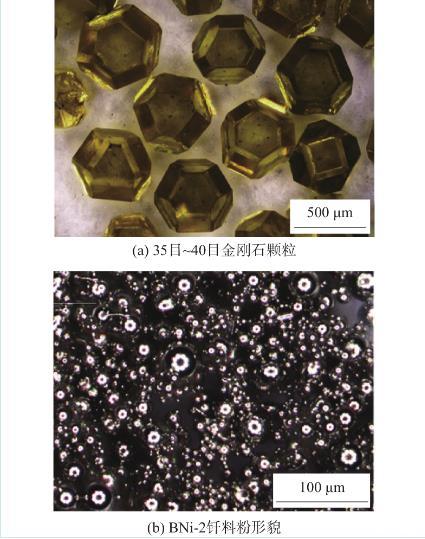 圖1金剛石和BNi-2釬料粉形貌