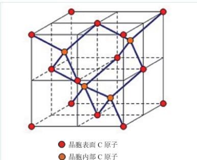 金剛石是由碳原子構(gòu)成的復式晶格結(jié)構(gòu),如圖12所示。金剛石這種特殊結(jié)構(gòu)決定其具有獨特的光學性能。金剛石透光范圍寬,具備紫外~可見~遠紅外波段的穿透性,從紫外(0.22μm)到遠紅外(40——1000μm),除4μm——6μm位置上存在微小本征吸收峰(吸收系數(shù)為12.3 cm?1)之外,不存在其他吸收峰。