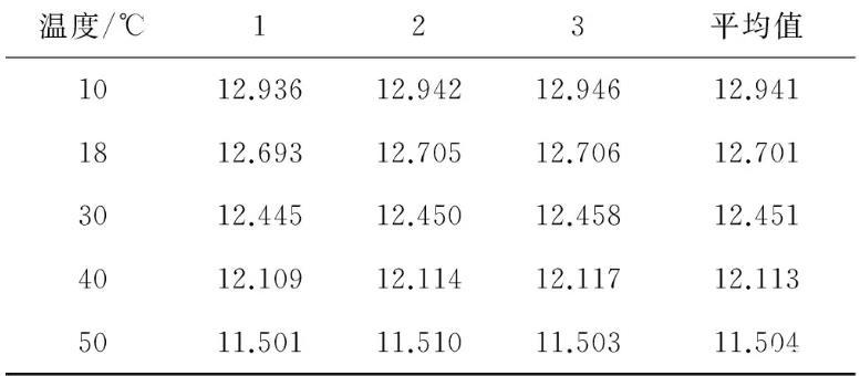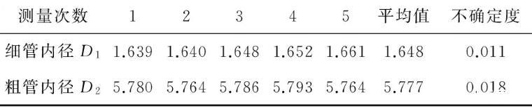 表1 U型管內(nèi)徑測量值單位:mm