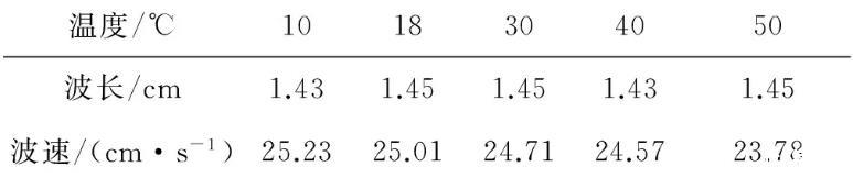 表4不同溫度下波長和波速測量數(shù)據(jù)單位:mm