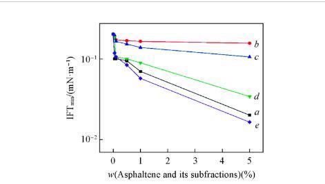 2.5瀝青質(zhì)及其亞組分對(duì)烷基苯磺酸鹽溶液與模擬油間動(dòng)態(tài)界面張力的影響