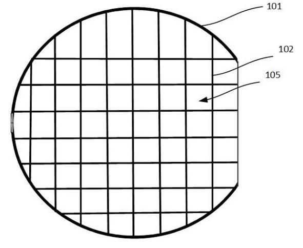 本發(fā)明利用溶液的張力,設計出了一種用于精密分區(qū)腐蝕又不接觸晶圓104表面的隔離網筒,將不均勻的晶圓104進行分區(qū)腐蝕。本發(fā)明可以實現(xiàn)一片晶圓104上分區(qū)腐蝕,每一個腐蝕區(qū)域105的形狀大小可以通過隔離網筒的設計而達到符合實際需求,配合區(qū)域腐蝕技術(如每個腐蝕區(qū)域施以不同濃度腐蝕液或施以不同的腐蝕時間等)實現(xiàn)分區(qū)精密控制,滿足更精密的控制更嚴格的晶圓104均勻性要求,且不會造成晶圓表面劃傷和相鄰區(qū)域腐蝕液混合而無法區(qū)分的情況。