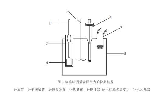 滴重法是利用液滴重量與支持它的表面張力的力相平衡進行測定的試驗。主要也是因為表面張力與液滴重量、滴管半徑、液體密度及重力加速度相關(guān)。滴重法要使用到的儀器主要玻璃滴管、恒溫裝置、平底試管、稱量瓶、攪拌器、電接觸式溫度計、電加熱器等。試驗步驟也是先配置測定溶液,清洗測量儀器,然后安裝好實驗裝置,啟動攪拌器,調(diào)節(jié)接觸溫度計,至所需溫度,使水恒溫半小時,要求普通溫度計的誤差不超過±0.5 ℃。恒溫足夠時間以消除平底試管內(nèi)與水溫的差,一般溫差小于 1 ℃。用分析天平稱得潔凈干燥的稱量瓶空瓶重。放入浸入恒溫裝置的平底試管內(nèi)。將橡皮管套于移液管的未加工端,用吸球?qū)⒋郎y液吸入移液管內(nèi),用夾子夾住橡皮管不使待測液滴下然后將移液管垂直懸掛入恒溫裝置內(nèi)的試管中,但不可與稱量瓶接觸。恒溫半小時后,慢慢旋開夾子,讓液體自然滴下,調(diào)節(jié)水滴的下落速度至每滴 100-120 s。至20 滴時擰緊夾子,取出移液管。將稱量瓶稱重,減去空的稱量瓶重量,求得每液滴的重量。在同一溫度下重復(fù)兩次。對于表面張力能隨時間迅速變化的或者界面能夠迅速相互飽和的界面,測定精度為±0.1%。