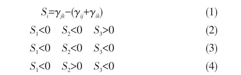 氣液液微分散技術(shù)在萃取分離領(lǐng)域的應(yīng)用是本文的重點關(guān)注對象,通常氣相作為內(nèi)相,萃取劑為中間相,低濃度稀土離子的水溶液為連續(xù)相。對于不同體系,最終所形成的氣液液三相流流型由三相界面張力關(guān)系決定。根據(jù)三相界面張力Torza等引入了鋪展系數(shù)[式(1)],若鋪展系數(shù)滿足式(2),該體系可形成水包油包氣中空液滴結(jié)構(gòu);若鋪展系數(shù)滿足式(3),該體系可形成Janus結(jié)構(gòu);若鋪展系數(shù)滿足式(4),油滴和氣泡將互相分離。對于常見的氮氣/P507萃取劑/稀土離子鹽酸水溶液體系,該體系界面張力關(guān)系滿足式(2),可形成穩(wěn)定的水包油包氣結(jié)構(gòu)。連續(xù)相的稀土離子與中間相的萃取劑在界面接觸發(fā)生反應(yīng),實現(xiàn)了稀土離子從水相到有機相的傳質(zhì)。在該過程中氣體的引入有兩個獨特優(yōu)勢:一是中空微液滴的形成增大了傳質(zhì)比表面積,加快反應(yīng)速率;二是與油滴相比中空微液滴的密度大大減小,因此可加速分相。與液液萃取相比,氣液液微分散萃取技術(shù)具備傳質(zhì)快及易分相的特點,有望解決大相比萃取過程中萃取效率低、易乳化等問題。