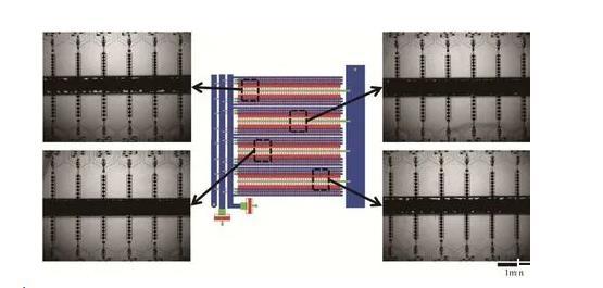 目前制約微流控技術(shù)實際應(yīng)用的重要因素是其處理通量低,無法滿足實際工業(yè)生產(chǎn)的需求。以上述微通道中萃取稀土離子為例,該過程連續(xù)相的流量僅為4mL/min,顯然不能滿足大量浸礦廢水處理的需求。目前關(guān)于微萃取設(shè)備的放大主要有兩種途徑。其中,微通道并行放大是大規(guī)模生產(chǎn)乳液和氣泡的一種常用可靠途徑。Jeong和Chen等設(shè)計了一種并行聚焦流微通道用來制備氣液液雙乳液,實現(xiàn)了在10cm×10cm的PDMS上并行了400個聚焦流微通道(圖7)。雙乳液的生產(chǎn)通量可達(dá)3L/h,可在1h內(nèi)制備1011個高度單分散的中空液滴。利用該設(shè)備進(jìn)行稀土離子的萃取結(jié)果表明相比于單一微通道結(jié)構(gòu),該設(shè)備的處理通量提高了10倍,且稀土離子的萃取率可在數(shù)秒內(nèi)提高至98%以上。本文作者所在的研究團隊發(fā)明的膜分散微萃取設(shè)備同樣可以實現(xiàn)微通道萃取設(shè)備的有效放大,對于膜分散微萃取設(shè)備,其分散介質(zhì)為含有眾多規(guī)則排列微孔的不銹鋼薄膜,每個微孔相當(dāng)于一個微通道,其處理量可提高到200mL/min;該團隊進(jìn)一步發(fā)明多通道膜分散微結(jié)構(gòu)設(shè)備,已經(jīng)成功應(yīng)用到萬噸級/年處理量的氣體吸收和液液萃取過程,為稀土萃取回收過程放大提供了堅實的基礎(chǔ)。從氣液液微分散萃取過程的放大研究進(jìn)展來看,處理通量已經(jīng)不再成為制約其發(fā)展的問題,多通道膜分散微萃取設(shè)備有望實現(xiàn)高通量快速富集回收稀土離子的目標(biāo)。