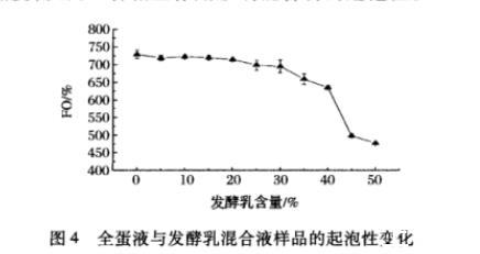 2.4發(fā)酵乳對(duì)全蛋液起泡性的影響