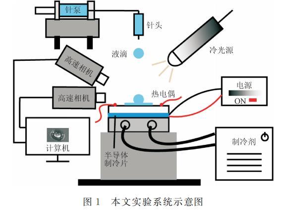 盡管如此,目前針對低表面張力液滴沖擊過冷水平壁面的研究仍有所欠缺。液滴在過冷表面上的沖擊和應(yīng)用在生活中也十分常見,例如噴霧凍結(jié)、高空中的過冷水滴沖擊機翼導致結(jié)冰、過冷噴涂等。本文針對乙醇液滴沖擊過冷親水水平壁面這一基本物理現(xiàn)象開展實驗,針對其鋪展動力學行為進行分析與討論,旨在探究低表面張力對液滴沖擊過冷水平壁面的鋪展動力學行為的影響。這一研究有助于加深對固液接觸現(xiàn)象的理解,為更好的控制固液介面接觸提供有效指導。