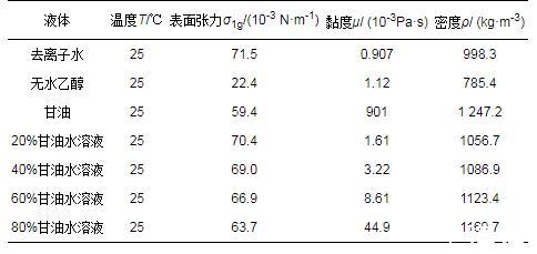 目前文獻(xiàn)中關(guān)于各類(lèi)因素對(duì)液滴鋪展線速度和鋪展面積的影響,以及撞擊過(guò)程中液滴的表面能、動(dòng)能和黏性耗散的變化的研究較少,因此本文采用實(shí)驗(yàn)的方法研究了液滴的物性和操作條件對(duì)其撞擊固體表面過(guò)程中的鋪展直徑、鋪展速度和鋪展面積的影響,并結(jié)合能量法對(duì)表面能、動(dòng)能和黏性耗散在撞擊過(guò)程中的變化進(jìn)行分析,以揭示液滴撞擊固體表面過(guò)程的特點(diǎn)。