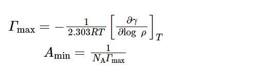 通過鉑環(huán)法在室溫下進(jìn)行表面張力測定,參考GB/T 5549-2010。繪制出表面張力-濃度對數(shù)(γ-lg c)曲線。使用公式(1)和(2)對飽和吸附量(Гmax)和單個分子占據(jù)最小表面積(Amin)進(jìn)行計算。