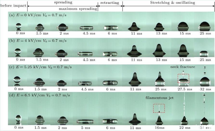 可視化實(shí)驗(yàn)方法研究電場(chǎng)作用下液滴撞擊表面的動(dòng)態(tài)行為(二)
