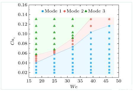 圖5不同韋伯數(shù)下的液滴模態(tài)圖