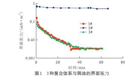 圖1 3種復合體系與稠油的界面張力