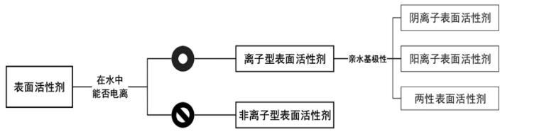 表面活性劑的分類如圖1所示。礦井下的煤塵一般是帶負電荷,若選用陽離子表面活性劑配制溶液,那么帶負電荷的煤塵在與之接觸時,會與帶正電荷的親水性基團結(jié)合,造成疏水基分布在溶液表面現(xiàn)象,促使煤塵不容易被溶液潤濕,故不考慮陽離子活性添加劑。結(jié)合表面活性劑的理化性質(zhì),本文選取了六種常用的表面活性劑來進行實驗,材料均采購于萬化(廣州)供應鏈服務有限公司。