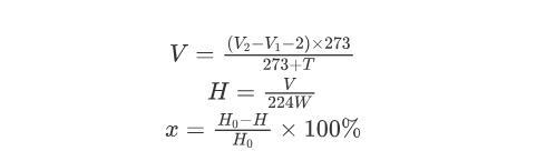 式中:V為在1個標準大氣壓、273 K的條件下生成氫氣的體積,mL;V 1為反應(yīng)前堿式滴定管的讀數(shù),mL;V 2為反應(yīng)后堿式滴定管的讀數(shù),mL;T為反應(yīng)溫度,℃;H為反應(yīng)產(chǎn)物的含氫量,10-2 mol/g;W為樣品質(zhì)量,g;x為MDHM轉(zhuǎn)化率;H 0為反應(yīng)前產(chǎn)物的含氫量,10-2 mol/g。