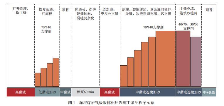 圖1深層煤巖氣極限體積壓裂施工泵注程序示意
