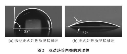 圖2脈動(dòng)熱管內(nèi)壁的潤(rùn)濕性