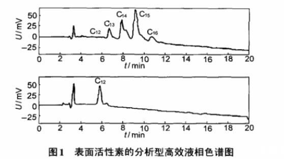 圖1表面活性素的分析型高效液相色譜圖