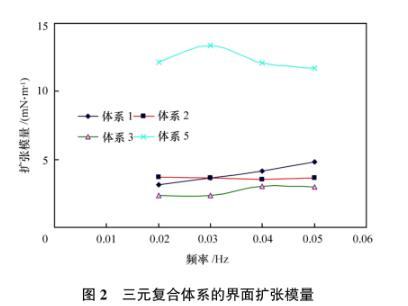 體系1、體系2、體系3可以構(gòu)成界面張力不同而界面擴張黏彈性相同的對比實驗;體系4、體系5、體系6可以構(gòu)成界面張力相同而界面擴張黏彈性不同的對比實驗。