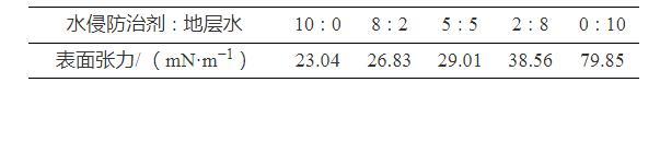 表1水侵防治劑與地層水混合后的表面張力值