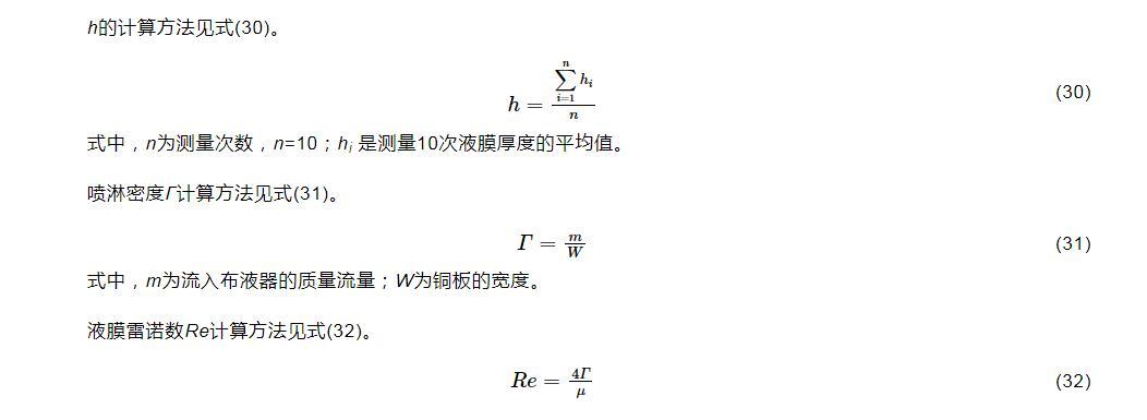 液膜雷諾數(shù)Re計算方法見式(32)。