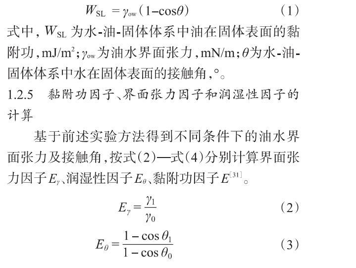 1.2.5黏附功因子、界面張力因子和潤(rùn)濕性因子的計(jì)算