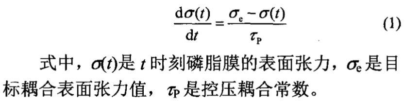 式中,σ(t)是t時刻磷脂膜的表面張力,σe是目標耦合表面張力值,τP是控壓耦合常數(shù)。