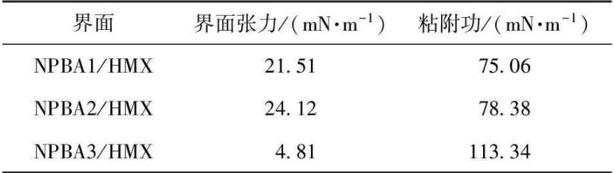 計算得到3種NPBA分別與HMX之間的粘附功WAB.界面張力和粘附功計算結(jié)果見表5.