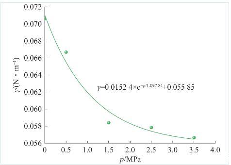 圖4不同瓦斯壓力條件下水的表面張力