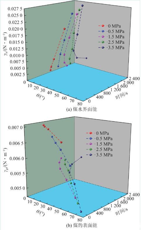 3.2煤水界面能、煤的表面能及黏附功的動(dòng)態(tài)演化規(guī)律