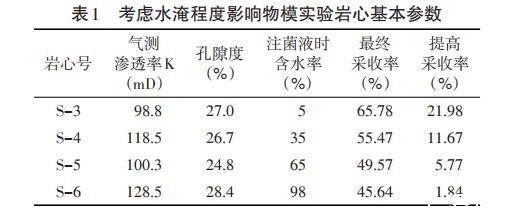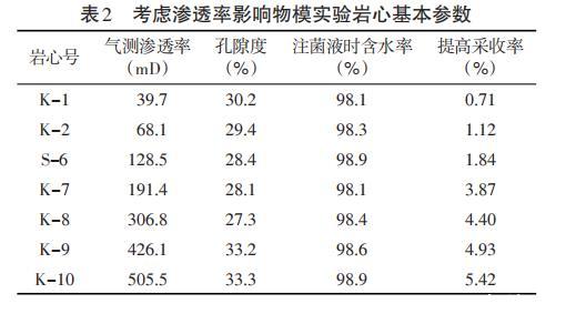 2.3.3評價(jià)滲透率對微生物驅(qū)油的影響