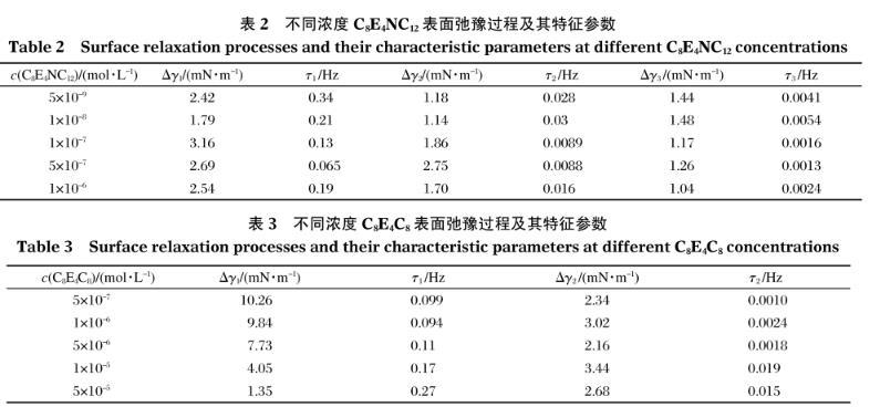 表3不同濃度C8E4C8表面弛豫過程及其特征參數(shù)