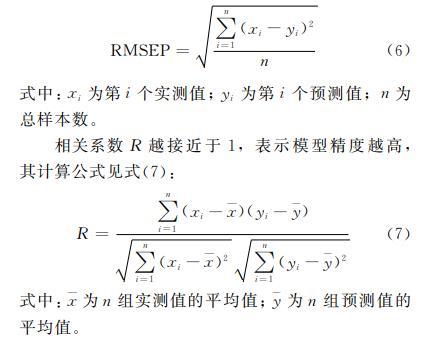 注:RMSEP-均方根預(yù)測(cè)誤差;R-相關(guān)系數(shù)