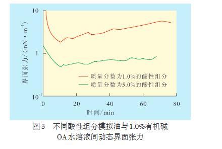 2.5有機堿OA水溶液與瀝青質組分模擬油間動態(tài)界面張力