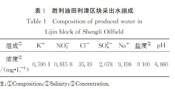 實(shí)驗(yàn)試劑:葡萄糖、檸檬酸鈉、酵母粉、KH2PO4、(NH4)2SO4、MgSO4·7H2O、乙酸乙酯為分析純,購(gòu)自國(guó)藥集團(tuán)化學(xué)試劑有限公司;正己烷為優(yōu)級(jí)純,購(gòu)自Merck公司;二氯甲烷為優(yōu)級(jí)純,購(gòu)自B&J公司;正構(gòu)烷烴混合標(biāo)準(zhǔn):C8—C40包含異構(gòu)烷烴姥鮫烷和植烷,購(gòu)自Accustandard公司;層析硅膠(100~200目)及硅膠層析板購(gòu)自青島海洋化工廠;原油采集自中國(guó)石化勝利油田有限公司利津區(qū)塊;降解實(shí)驗(yàn)用水根據(jù)勝利油田利津區(qū)塊采出水組成配置(見表1),采出水中pH、鹽度用多參數(shù)儀(Manta3.0,Eureka,美國(guó))測(cè)定,K+、NO-3、Cl-、SO2-4、Na+等離子依據(jù)SY/T5523—2016《油田水分析方法》中給出的檢測(cè)方法檢測(cè)。