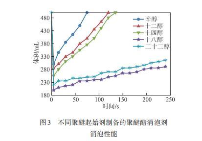 2.2聚醚起始劑碳鏈長度對消泡劑性能的影響